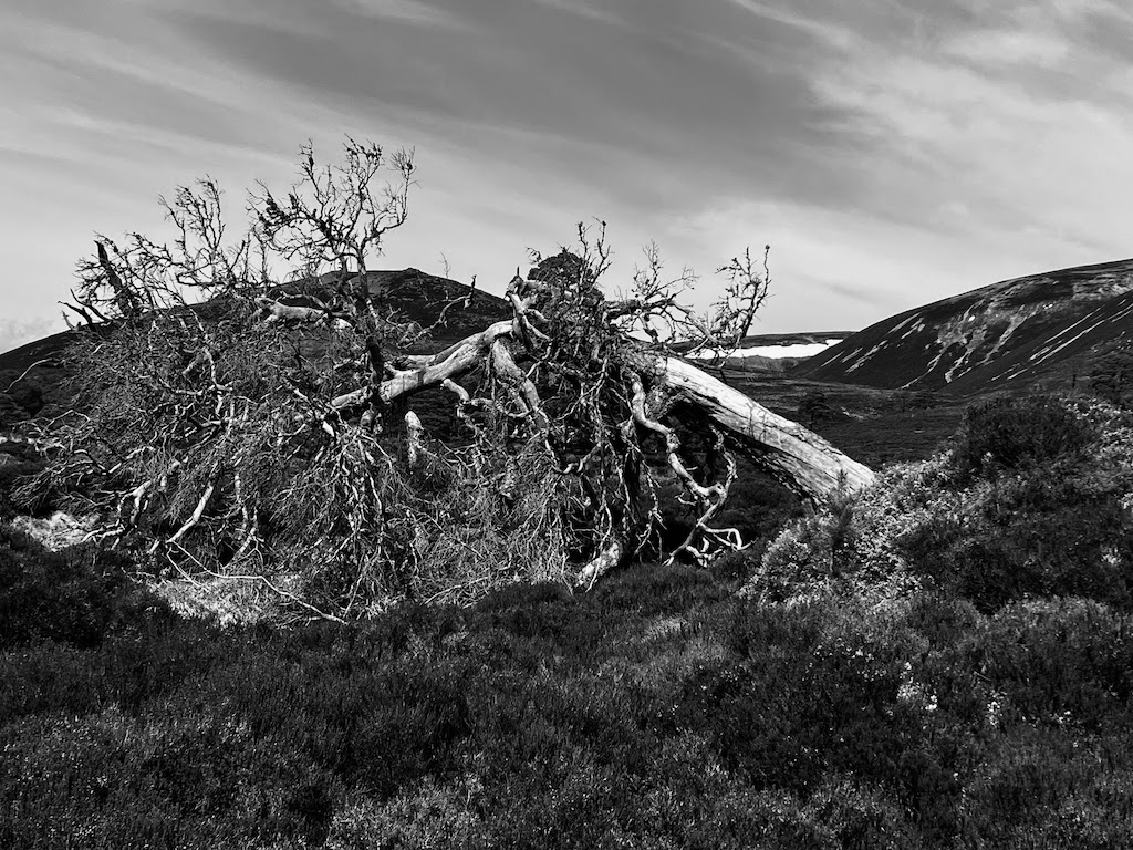Around 4 hours into the ride we peak out at around 670m, with Ben Avon directly north of us. And from here on, its down hill for the next 35km !