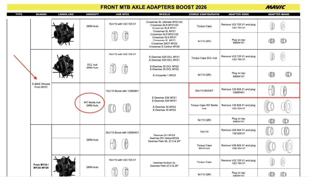There are a few points worth noting when referencing the Mavic MTB Wheels Adaptor Document ;