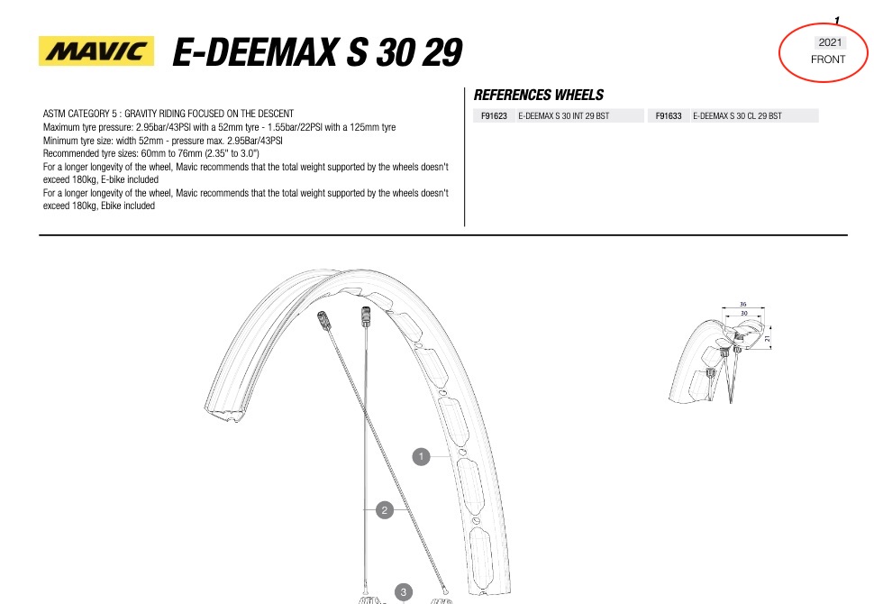 So in the example above we have identified the wheel as a 2021 Mavic E-Deemax S 30 29 Front Wheel